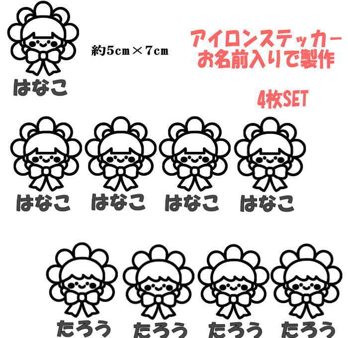 アイロン接着 お名前シール かわいい (名前4文字以内) (4枚SET) お名前ステッカー 漢字 オリジナル オーダーメイド 文字ステッカー